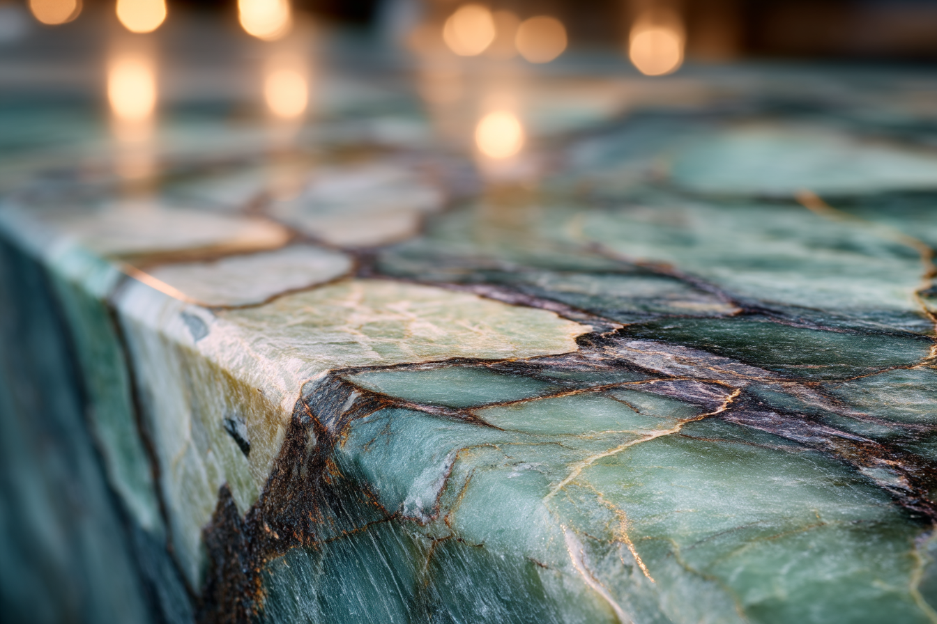 - Naturstein (Granit/Quarzit): perfekt zu dunklem Grün, sehr langlebig